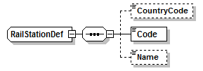 | source | <xsd:complexType name="RailStationDef"> <xsd:sequence> <xsd:element name="CountryCode" type="CountryCodeDef" minOccurs="0"/> <xsd:element name="Code" type="StationCodeDef"/> <xsd:element name="Name" minOccurs="0"> <xsd:simpleType> <xsd:restriction base="xsd:string"> <xsd:maxLength value="32"/> </xsd:restriction> </xsd:simpleType> </xsd:element> </xsd:sequence> </xsd:complexType> |