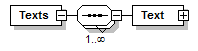 | source | <xsd:element name="Texts"> <xsd:complexType> <xsd:sequence maxOccurs="unbounded"> <xsd:element name="Text"> <xsd:complexType> <xsd:sequence> <xsd:element name="Code"> <xsd:annotation> <xsd:documentation>Response Code, cf. code list in interface description</xsd:documentation> <xsd:documentation xml:lang="DE">Quittungscode, s. Schnittstellenbeschreibung</xsd:documentation> </xsd:annotation> <xsd:simpleType> <xsd:restriction base="xsd:string"> <xsd:maxLength value="5"/> </xsd:restriction> </xsd:simpleType> </xsd:element> <xsd:element name="FreeText" minOccurs="0"> <xsd:simpleType> <xsd:restriction base="xsd:string"> <xsd:maxLength value="200"/> </xsd:restriction> </xsd:simpleType> </xsd:element> </xsd:sequence> </xsd:complexType> </xsd:element> </xsd:sequence> </xsd:complexType> </xsd:element> |