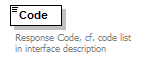 | source | <xsd:element name="Code"> <xsd:annotation> <xsd:documentation>Response Code, cf. code list in interface description</xsd:documentation> <xsd:documentation xml:lang="DE">Quittungscode, s. Schnittstellenbeschreibung</xsd:documentation> </xsd:annotation> <xsd:simpleType> <xsd:restriction base="xsd:string"> <xsd:maxLength value="5"/> </xsd:restriction> </xsd:simpleType> </xsd:element> |