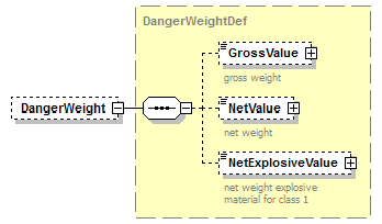 | source | <xsd:complexType name="DangerWeightDef"> <xsd:annotation> <xsd:documentation>always weight values in gram</xsd:documentation> <xsd:documentation xml:lang="DE">alle Gewichtsangaben für Gefahrgut in Gramm</xsd:documentation> </xsd:annotation> <xsd:sequence> <xsd:element name="GrossValue" type="WeightDef" minOccurs="0"> <xsd:annotation> <xsd:documentation>gross weight</xsd:documentation> <xsd:documentation xml:lang="DE">Bruttogewicht</xsd:documentation> </xsd:annotation> </xsd:element> <xsd:element name="NetValue" type="WeightDef" minOccurs="0"> <xsd:annotation> <xsd:documentation>net weight</xsd:documentation> <xsd:documentation xml:lang="DE">Nettogewicht</xsd:documentation> </xsd:annotation> </xsd:element> <xsd:element name="NetExplosiveValue" type="WeightDef" minOccurs="0"> <xsd:annotation> <xsd:documentation>net weight explosive material for class 1</xsd:documentation> <xsd:documentation xml:lang="DE">Explosivstoff-Masse (Klasse 1)</xsd:documentation> </xsd:annotation> </xsd:element> </xsd:sequence> </xsd:complexType> |