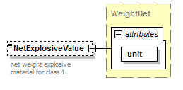 | source | <xsd:element name="NetExplosiveValue" type="WeightDef" minOccurs="0"> <xsd:annotation> <xsd:documentation>net weight explosive material for class 1</xsd:documentation> <xsd:documentation xml:lang="DE">Explosivstoff-Masse (Klasse 1)</xsd:documentation> </xsd:annotation> </xsd:element> |