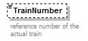 | source | <xsd:element name="TrainNumber" minOccurs="0"> <xsd:annotation> <xsd:documentation>reference number of the actual train</xsd:documentation> <xsd:documentation xml:lang="DE">Zugnummer</xsd:documentation> </xsd:annotation> <xsd:simpleType> <xsd:restriction base="xsd:string"> <xsd:maxLength value="6"/> </xsd:restriction> </xsd:simpleType> </xsd:element> |