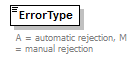 | source | <xsd:element name="ErrorType"> <xsd:annotation> <xsd:documentation>A = automatic rejection, M = manual rejection</xsd:documentation> <xsd:documentation xml:lang="DE">A = automatische Rückweisung, M = manuelle Rückweisung</xsd:documentation> </xsd:annotation> <xsd:simpleType> <xsd:restriction base="xsd:string"> <xsd:length value="1"/> </xsd:restriction> </xsd:simpleType> </xsd:element> |