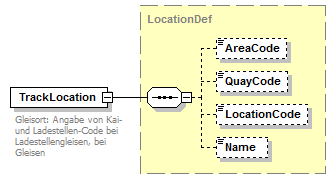 | source | <xsd:element name="TrackLocation" type="LocationDef"> <xsd:annotation> <xsd:documentation xml:lang="DE">Gleisort: Angabe von Kai- und Ladestellen-Code bei Ladestellengleisen, bei Gleisen</xsd:documentation> <xsd:documentation xml:lang="DE">in den Bezirken bleibt Kai-Code leer und im Ladestellen-Code wird der Bezirk angegeben.</xsd:documentation> </xsd:annotation> </xsd:element> |