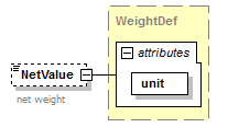 | source | <xsd:element name="NetValue" type="WeightDef" minOccurs="0"> <xsd:annotation> <xsd:documentation>net weight</xsd:documentation> <xsd:documentation xml:lang="DE">Nettogewicht</xsd:documentation> </xsd:annotation> </xsd:element> |