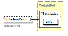 | source | <xsd:element name="UnladenWeight" type="WeightDef" minOccurs="0"> <xsd:annotation> <xsd:documentation xml:lang="DE">Eigengewicht</xsd:documentation> </xsd:annotation> </xsd:element> |