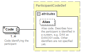 | source | <xsd:element name="Metainfo" type="MetaInfoDef"> <xsd:annotation> <xsd:documentation>In the TD04 interface only one recipient is used, i.e. only 2 or 3 participants can be specified for a transmission.</xsd:documentation> <xsd:documentation>The attribute Alias="DAK" is mandatory.</xsd:documentation> <xsd:documentation xml:lang="DE">In TD04 wird nur 1 Empfänger benutzt, d.h. es sind immer 2 oder 3 Beteiligte (participants) angegeben für eine Übertragung.</xsd:documentation> <xsd:documentation xml:lang="DE">In TD04 ist das Attribut Alias="DAK" Pflicht.</xsd:documentation> </xsd:annotation> </xsd:element> |