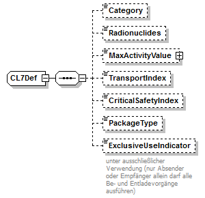 | source | <xsd:element name="Radioactive" type="CL7Def" minOccurs="0"> <xsd:annotation> <xsd:documentation>only for class 7</xsd:documentation> </xsd:annotation> </xsd:element> |