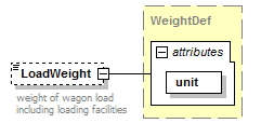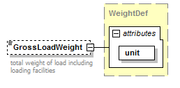 | source | <xsd:element name="GrossLoadWeight" type="WeightDef" minOccurs="0"> <xsd:annotation> <xsd:documentation>total weight of load including loading facilities</xsd:documentation> <xsd:documentation xml:lang="DE">Gesamtgewicht der Ladung inklusive Lademittel</xsd:documentation> </xsd:annotation> </xsd:element> |