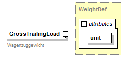 | source | <xsd:element name="GrossTrailingLoad" type="WeightDef" minOccurs="0"> <xsd:annotation> <xsd:documentation xml:lang="DE">Wagenzuggewicht</xsd:documentation> </xsd:annotation> </xsd:element> |