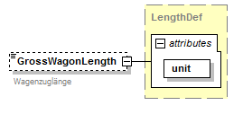 | source | <xsd:element name="GrossWagonLength" type="LengthDef" minOccurs="0"> <xsd:annotation> <xsd:documentation xml:lang="DE">Wagenzuglänge</xsd:documentation> </xsd:annotation> </xsd:element> |