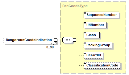 | source | <xsd:complexType name="DanGoodsType"> <xsd:sequence> <xsd:element name="SequenceNumber"> <xsd:simpleType> <xsd:restriction base="xsd:positiveInteger"> <xsd:maxInclusive value="99"/> </xsd:restriction> </xsd:simpleType> </xsd:element> <xsd:element name="UNNumber"> <xsd:simpleType> <xsd:restriction base="xsd:string"> <xsd:length value="4"/> </xsd:restriction> </xsd:simpleType> </xsd:element> <xsd:element name="Class"> <xsd:simpleType> <xsd:restriction base="xsd:string"> <xsd:maxLength value="4"/> </xsd:restriction> </xsd:simpleType> </xsd:element> <xsd:element name="PackingGroup" minOccurs="0"> <xsd:simpleType> <xsd:annotation> <xsd:documentation>values I, II or III - corresponding to the dangerous goods class</xsd:documentation> <xsd:documentation xml:lang="DE">I, II oder III - entsprechend der Gefahrklasse</xsd:documentation> </xsd:annotation> <xsd:restriction base="xsd:string"> <xsd:minLength value="1"/> <xsd:maxLength value="3"/> </xsd:restriction> </xsd:simpleType> </xsd:element> <xsd:element name="HazardID" minOccurs="0"> <xsd:simpleType> <xsd:annotation> <xsd:documentation>Hazard Identification: number shown on the orange-coloured plate</xsd:documentation> <xsd:documentation xml:lang="DE">Nummer zur Kennzeichnung der Gefahr (Kemler)</xsd:documentation> </xsd:annotation> <xsd:restriction base="xsd:string"> <xsd:maxLength value="4"/> </xsd:restriction> </xsd:simpleType> </xsd:element> <xsd:element name="ClassificationCode" minOccurs="0"> <xsd:simpleType> <xsd:restriction base="xsd:string"> <xsd:maxLength value="7"/> </xsd:restriction> </xsd:simpleType> </xsd:element> </xsd:sequence> </xsd:complexType> |